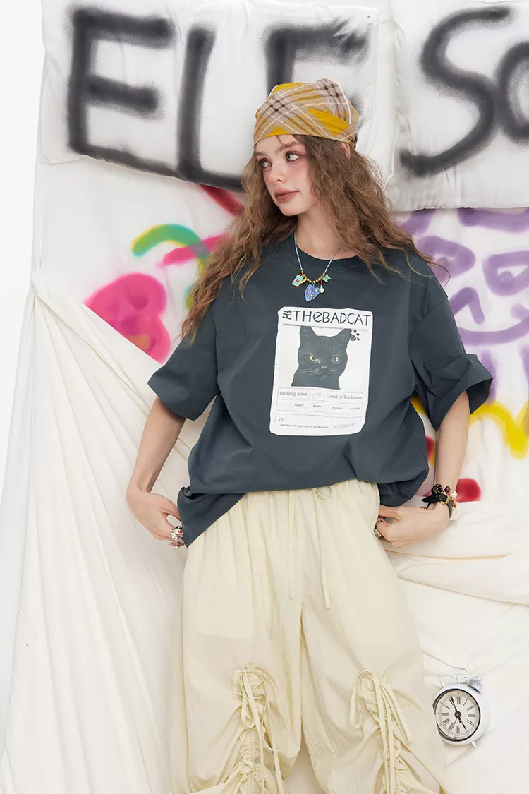 This tee is all about comfort. Crafted with a lightweight knitted cotton fabric, it offers a non-stretch yet cozy feel that drapes gently over the body. The regular-length cut pairs perfectly with jeans, shorts, or even tucked into skirts. Its O-neck collar and short sleeves (4–16 inches in length) ensure a classic fit with a touch of playful charm thanks to the eye-catching cartoon print.